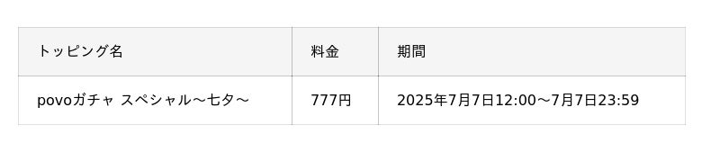 ■「povoガチャ スペシャル~七夕~」について