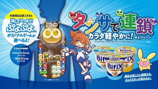 「BifiXヨーグルト×ぷよぷよ」タイアップキャンペーン“タンサで連鎖カラダ軽やかに!”を開催 BifiXヨーグルトを食べてオリジナルゲーム「消してスッキリ! ぷよぷよ」に挑戦しよう