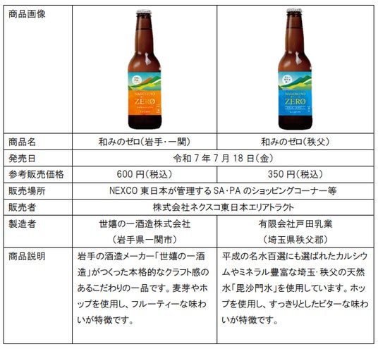 SA・PAでのランチシーンやお土産にもご満足いただけるよう、飲みごたえのある味わいに仕上げています。商品は、「和みのゼロ(岩手・一関)」と「和みのゼロ(秩父)」の2種類を展開しています。