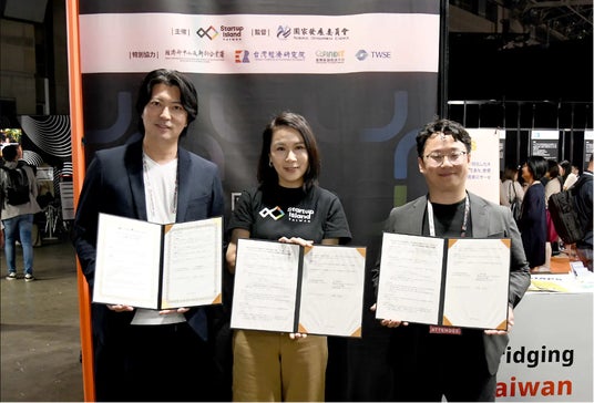 左から、TAKAGIグループ/(株)高木ビル代表取締役 高木秀邦、Startup Island TAIWAN マネージングディレクター Amanda Liu氏、同時にMOUを締結したJCCO代表理事 青木雄太氏。尚、JCCOと高木ビルはコンソーシアムを組んでおり、高木が理事を務める