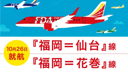 株式会社フジドリームエアラインズ(略称:FDA、本社:静岡県静岡市、代表取締役社長:本田 俊介)は、冬ダイヤの運航開始日である2025年10月26日(日)より『福岡=仙台』線ならびに『福岡=花巻』線の新規開設の方針を決定いたしました。