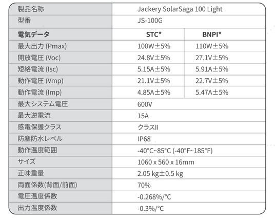 製品ページ:https://www.jackery.jp/products/jackery-solarsaga-100-light