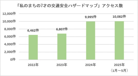 2022年3月の公開以来、多くの方々にご利用いただいており、アクセス数が増加しています。子どもたちの安全な登下校や外出を支援するツールとしての認知が広がっており、交通安全への意識向上に貢献しています。