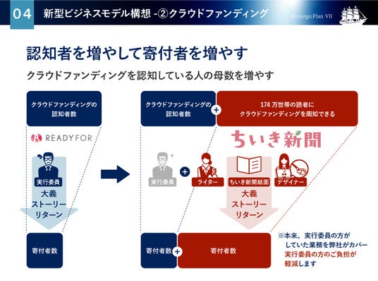 株式会社地域新聞社(本社:千葉県八千代市、代表取締役社長:細谷 佳津年、証券コード:2164、以下「当社」といいます。)は、このたび成長戦略「ストラテジック・プラン」の一環として、クラウドファンディングと記事を活用した広告費創出型ビジネスモデル(以下「本モデル」といいます。)を立ち上げ、本格的に展開することをお知らせいたします。
