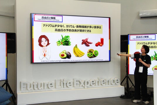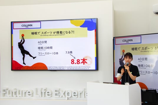 6月25日と7月1日、「今日から実践!睡眠×栄養で活力ある毎日へ」と題したステージ発表を行いました。睡眠データだけでなく、『あすけん』などによる日常的なデータの計測や、当社が培ってきた栄養コンサルティング力を活用して、食と睡眠の両面からアドバイスを行うといった当社グループならではの特色を生かしたユースケースを紹介しました。