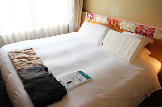 体験用に当ホテルの客室に、株式会社ブレインスリープのブレインスリープ ピローやスリープウェアなどを使用し、睡眠に最適な環境にアレンジしました