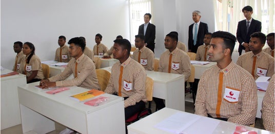 毎日7時間の日本語研修に真剣に取り組む生徒