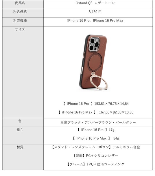 この度は、TORRASを代表する背面スタンド付きiPhoneケース「Ostand」シリーズから、ブランド初のレザー素材を採用した新商品「Ostand Q3レザートーン」を2025年7月より発売いたします。