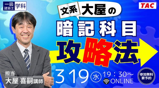 【TAC建築士】一級建築士(学科)文系大屋の暗記科目攻略法