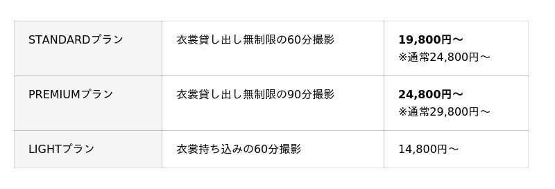 撮影日が2025年10月31日までのSTANDARDとPREMIUMプランについて、5,000円割引のオープンセールを名古屋栄店限定で実施いたします。