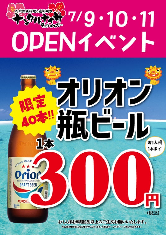 2.各日40本限定で「オリオン瓶ビール」を1本300円(税込)にてご提供いたします。