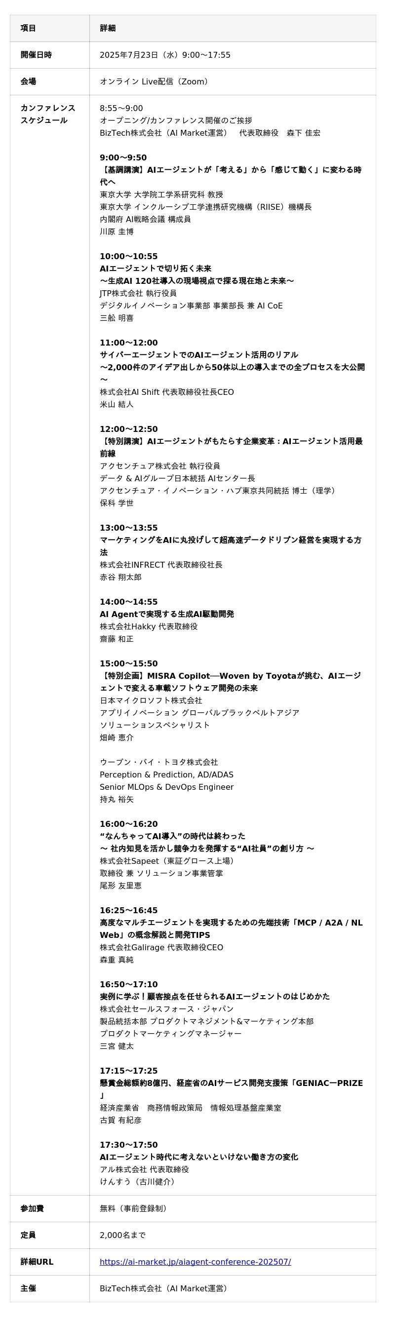 最適なAI会社やAIサービスの選定を支援するコンシェルジュサービス「AI Market」を運営するBizTech株式会社(東京都豊島区、代表取締役 森下 佳宏)が主催する、7月23日開催の国内最大級AIエージェントカンファレンス『AI Market Conference ~「AIエージェント」の現在地と未来が学べる1日~』に登壇する株式会社Hakky 代表取締役 齋藤 和正氏の講演内容の一部を先行公開致します。