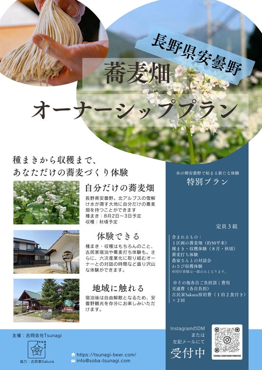 さらに、2025年夏より長野県安曇野市でも同様の蕎麦畑オーナーシッププランをスタート予定。