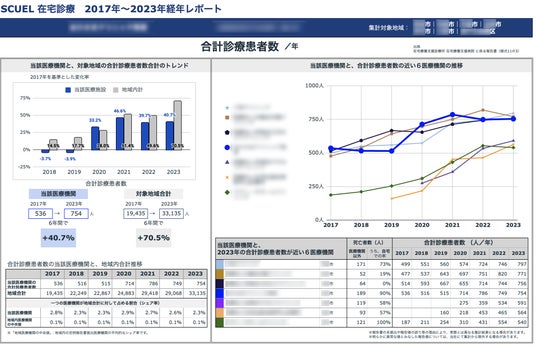 - 地域の在宅医療構造の変化を直感的に把握できる「SCUEL在宅医療実績レポート(無料版)」の限定公開