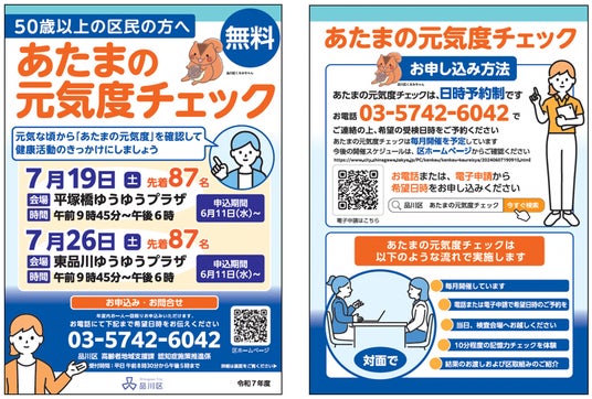令和7年度 品川区の認知症普及啓発事業 「あたまの元気度チェック」7月開催分の参加予約の受付を開始