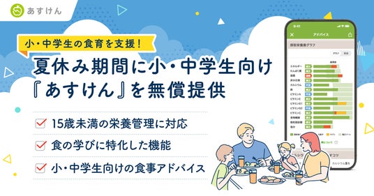 【小・中学生の食育を支援】『あすけん』、夏休み期間に小・中学生向け『あすけん』を無償提供
