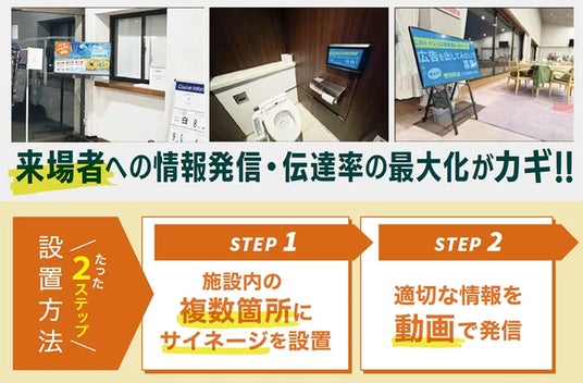 小型サイネージが個室トイレに設置されることで、視認率はほぼ100%。