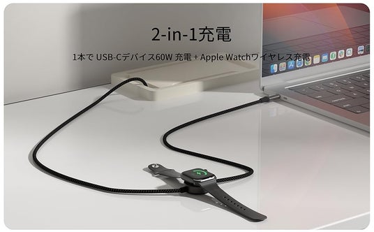 構造:片端がマグネット式Apple Watch充電端子、一方が通常のUSB-C端子