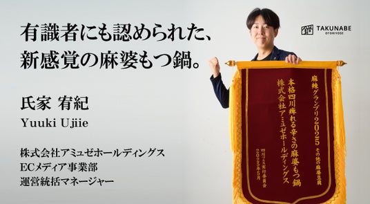 本格鍋お取り寄せ専門店「TAKUNABE」を運営する株式会社アミュゼホールディングス(本社:福島県福島市、代表取締役社長:神野穫)が販売する「本格四川 痺れる辛さの麻婆もつ鍋」が、日本最大の四川料理の祭典「四川フェス2025」にて行われた「麻辣グランプリ2025 麻婆豆腐編」において、初エントリーながらグランプリを受賞したことをお知らせいたします。本受賞を記念し、より多くのユーザー様にご参加いただけるプレゼントキャンペーンを実施しております。