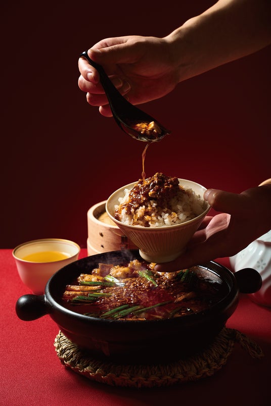 紹興酒やニンニク、豆板醤などで豚の挽肉を味付けした、ピリッと辛い特製「麻婆挽肉」付きで深みのある味わいをプラスし、見た目の盛り付けも美しく演出します。