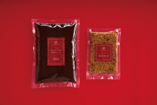 「痺れる辛さの麻婆スープ」と「麻婆挽肉」のパッケージ。