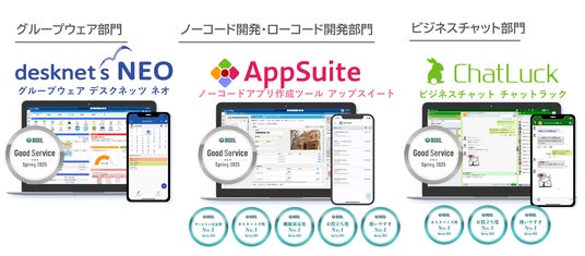 株式会社ネオジャパン(本社:神奈川県横浜市、代表取締役社長:齋藤 晶議)はスマートキャンプ株式会社(以下「スマートキャンプ」)が今最も評価されているSaaSを表彰する「BOXIL SaaS AWARD Spring 2025」において、グループウェア『desknet's NEO』、ノーコードアプリ作成ツール『AppSuite』ビジネスチャット『ChatLuck』が、3部門で計11の賞を受賞したことをお知らせします。