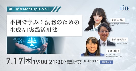 JILA 第3部会では、「事例で学ぶ!法務のための生成AI実践活用法」をテーマに、Meetupイベントを開催いたします。