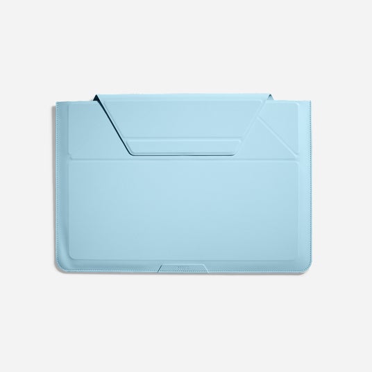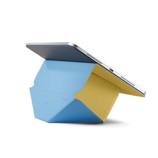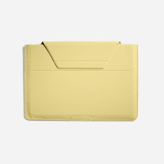 プリンイエロー、ミストブルーの2色が登場。PCスタンドとケースが一体となり、用途に応じて角度調整が可能なため、突発的な作業にも柔軟に対応できます。機能性だけでなく、日常の作業環境に彩りを添える淡いカラーデザインも魅力です。