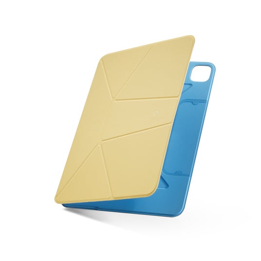 プリンイエロー×デニムブルー(表×裏)のバイカラーデザインが登場。ノートPCやタブレットの使用シーンに合わせて角度を自在に調整できるケースとしての多機能性に加えて、視覚的な楽しさがプラスされた商品です。