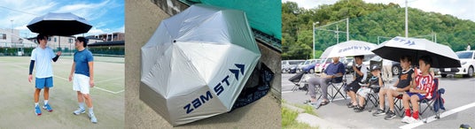 テニス使用者からは、「傘が大きく、傘の下は涼しく感じる」、「身体、ラケットバッグがすっぽり入る大きな傘で暑い日射しも安心してスポーツできる」といった感想を頂いております。
