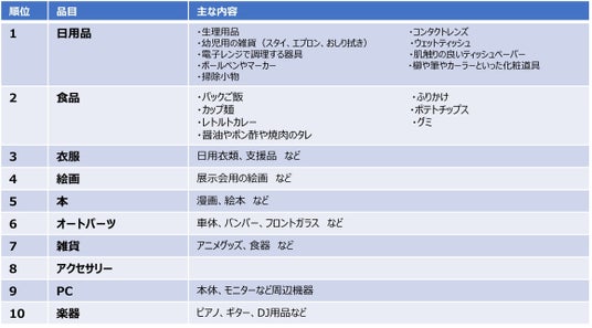 5位の「本」や7位の「雑貨」は漫画やキャラクターグッズが多く、海外での日本のカルチャーの人気と浸透を反映しています。