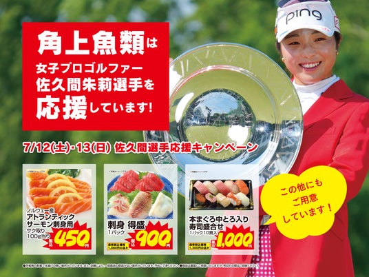 角上魚類ホールディングス株式会社(以下、角上魚類)では、スポンサー契約を締結している女子プロゴルファー佐久間朱莉選手の今季3勝目を祝し、応援キャンペーン第二弾を行います。