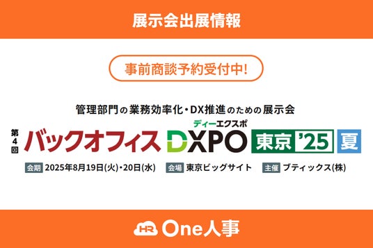 【8/19,20開催】One人事、展示会「第4回 バックオフィスDXPO東京’25 夏」に出展