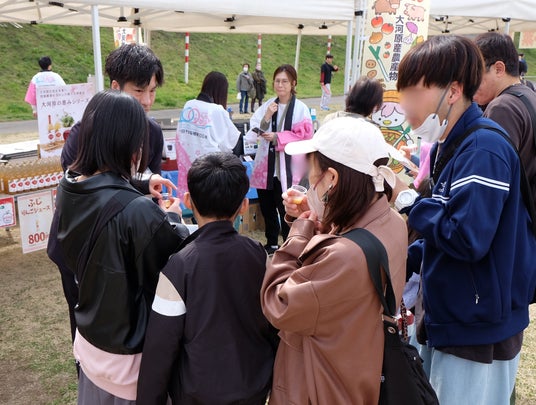 4月に開催された「おおがわら桜まつり」でも試飲販売を行いました。試飲した多くの方からは「こうとくは濃厚で少量でも満足感がある」「飲み比べると2種のリンゴジュースの違いがはっきりわかる」など、大変好評でした。