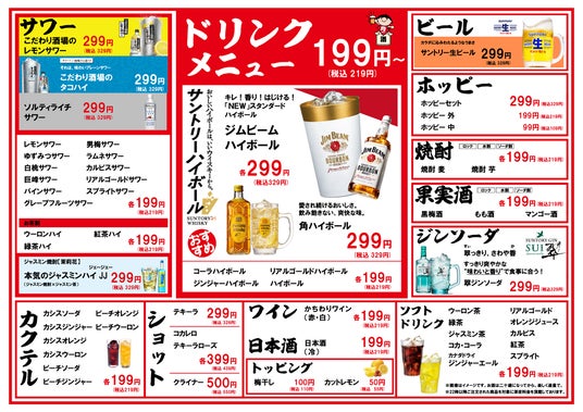 (旧・変更前)営業時間:16:00~26:00(ラストオーダー:フード・25:00、ドリンク・25:30)(新・変更後)営業時間:16:00~25:00(ラストオーダー:フード・24:00、ドリンク・24:30)