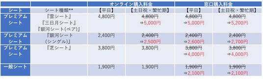 2. 土日祝日・ゴールデンウィークや夏休みなどの繁忙期はプレミアムシート*のみ現状価格より200円値上げいたします。