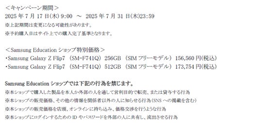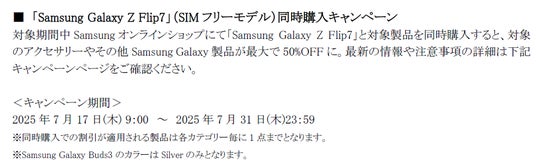 また、2025年7月17日(木)より「Samsung Galaxy Z Flip7(SIMフリーモデル)発売記念 予約購入キャンペーン」※を開催いたします。