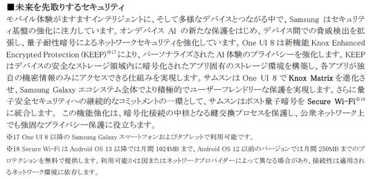※9 特定のAI機能を使用するにはSamsungアカウントのログインが必要な場合があります。サムスンはAI機能によって提供される出力の正確性、完全性、信頼性について、いかなる約束、保証も行いません。Galaxy AI機能の利用可否は地域/国、OS/One UIのバージョン、モデル、キャリアによって異なる場合があります。