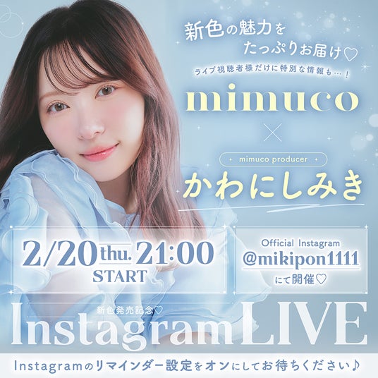 ■本日2月20日(木)21:00~配信!かわにしみき×mimuco 新色発売記念 Instagram Live