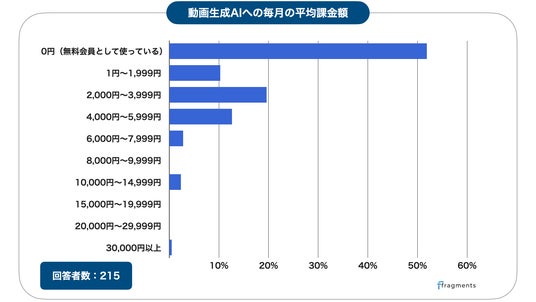 動画生成AIの利用者は毎月いくら課金してるのでしょうか。アンケートでは無課金のユーザーが最も多く、全体の約52%でした。