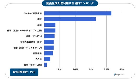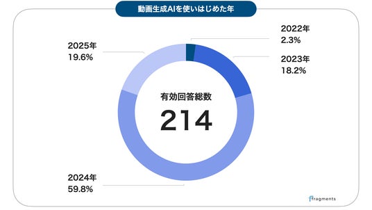 株式会社フラグメンツ(本社:東京都港区、代表取締役:数野健)が運営する生成AIに関する情報を発信するオウンドメディアは、動画生成AIの利用者214人にアンケート調査を行いました。