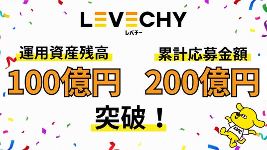 1万円から始める賢い資産運用「LEVECHY(レベチー)」を展開する株式会社LEVECHY(所在地:東京都港区赤坂、代表取締役:高 将司)は、2025年3月5日10時時点で、「LEVECHY」の運用資産残高が100億円、累計応募金額が200億円を突破したことをお知らせいたします。