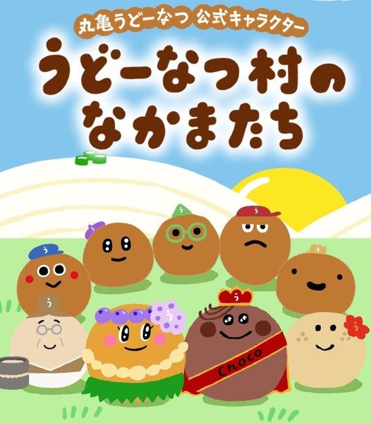 「丸亀うどーなつ」の魅力をより多くのお客さまにお届けする公式キャラクター「うどーなつ村のなかまたち」。 「うどーなつ村のなかまたち」がいると、少しだけ元気になれたり、ほっとできたり。いつもの仲間たち「るんもっち」「うるもっち」「のびもっち」「ほわもっち」「ぷんもっち」たちが暮らすうどーなつ村の日常を通じて、「丸亀うどーなつ」ならではの魅力や、最新情報をお届けします。キャラクターデザインは、アニメーション作家の合田 経郎さんの描き下ろしです。
