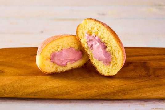 ふわっふわの食感と、甘い香りがたまらないスイーツです。ヨーグルトの酸味を効かせたクリームをベースにアサイーピューレを混ぜ込んだ風味豊かでなめらかなオリジナルクリームが詰まっています。