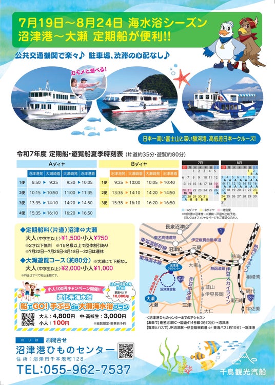 株式会社千鳥観光汽船(本社:静岡県沼津市/代表取締役:後藤武彦)は、2025年7月19日(土)~8月24日(日)の期間限定で、沼津港と大瀬崎を結ぶ「夏季限定定期便」を運航いたします。