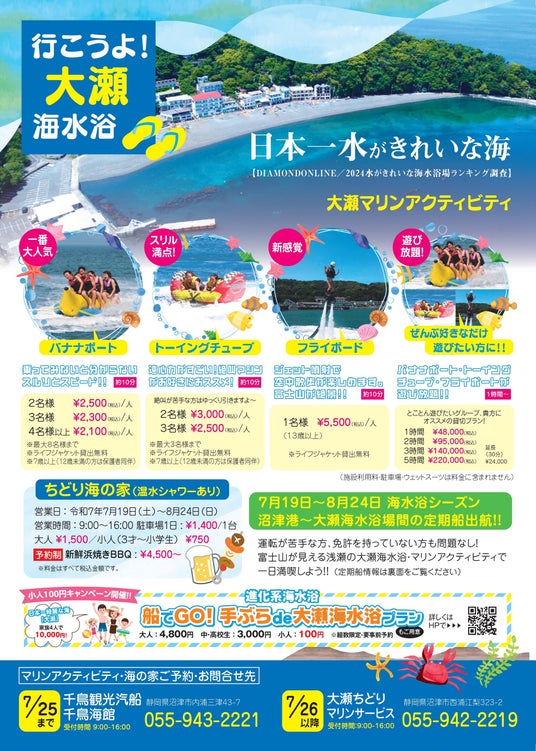 進化系海水浴「船でGo 手ぶらde大瀬海水浴プラン」のご予約も承っています。