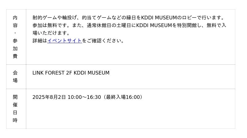 ■KDDI MUSEUM 縁日イベントおよび無料見学会
