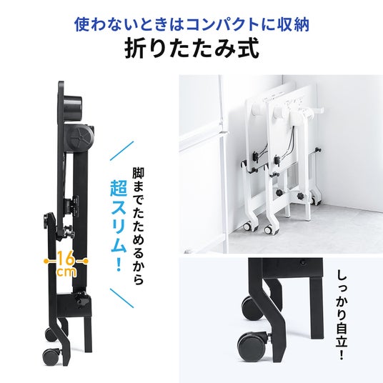 使わない時は折りたたむことができ、薄さ16cmまでコンパクトに折りたたむことができます。昇降デスク史上最薄だから、収納する際も邪魔になりにくいです。
