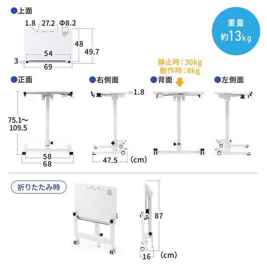 A3サイズを余裕で置ける天板に深めのドリンクホルダーや荷物を吊るせるフックに落下を防ぐストッパーなど作業を快適にする機能が満載です。オフィスはもちろんお家など様々な場所で活躍できます。
