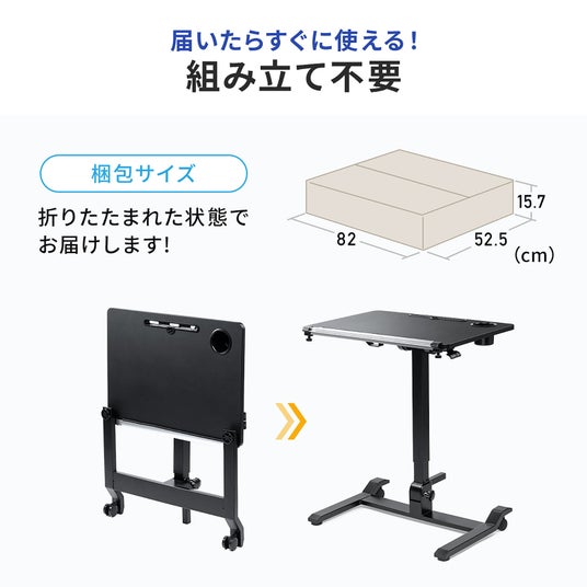 組み立て不要、届いたらすぐに使用することができる折りたたみガス圧式昇降デスク「100-ERD044W」に新色のブラックが登場